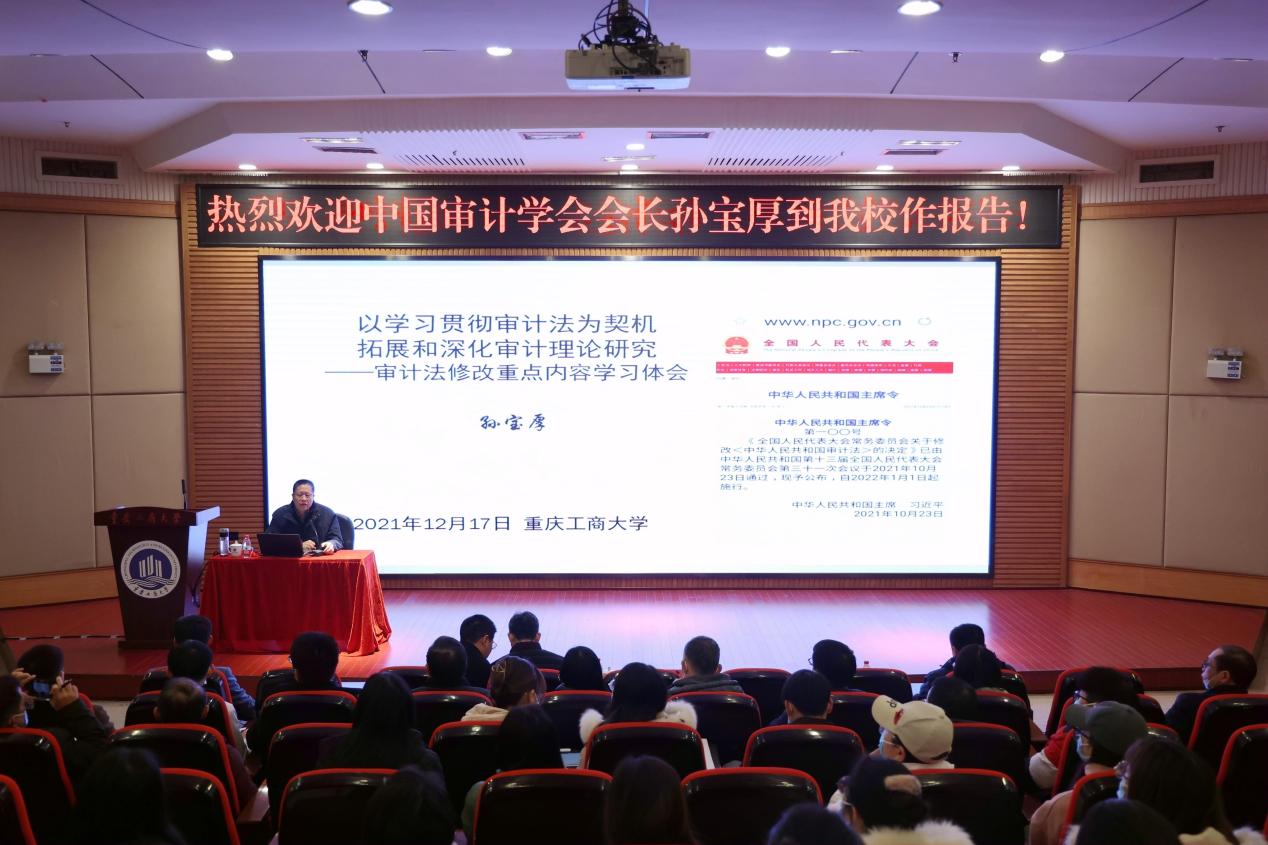 12月17日,中国审计学会会长、原国家审计署副审计长孙宝厚,《审计研究》编辑部主任王彪华一行来我校进行学术交流。