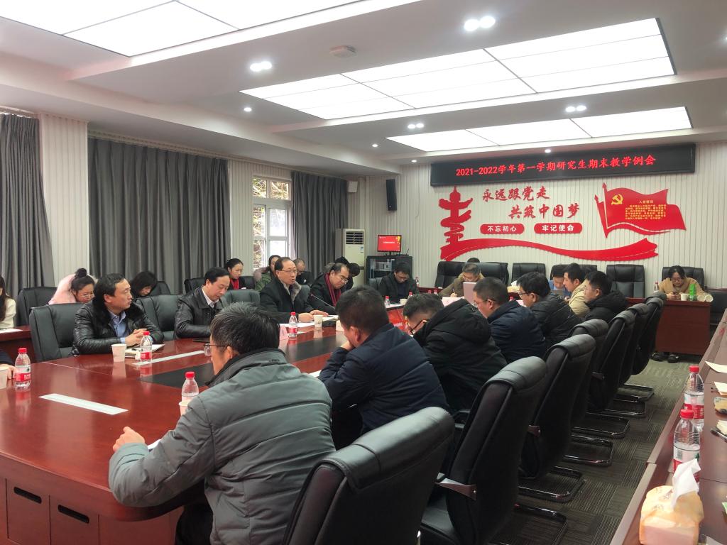 研究生院副院长曾胜通报本学期教学运行及教研教改情况,针对研究生团队授课、课程思政建设、教学成果奖的谋划等提出了建议和意见;会计学院副院长钟廷勇作题为《产教深度融合的MPAcc“财金素质链”人才培养模式创新与实践》的分享。田双全就课程建设、研究生分类培养、研究生导师组建设、期末教学安排等提出要求。