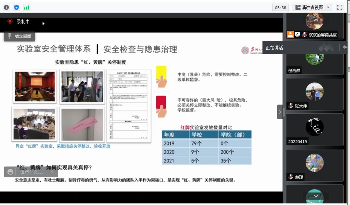 为落实全国高校实验室安全工作会议精神和《教育部办公厅关于组织开展2022年高等学校实验室安全检查工作的通知》文件部署,确保常态化疫情防控中高校实验室安全运行,保障广大师生人身安全和校园稳定,4月19日上午,教育部以线上形式组织召开2022年高校实验室安全培训会。学校科研处、教务处、二级学院及独立的科研平台等相关人员参加会议。
