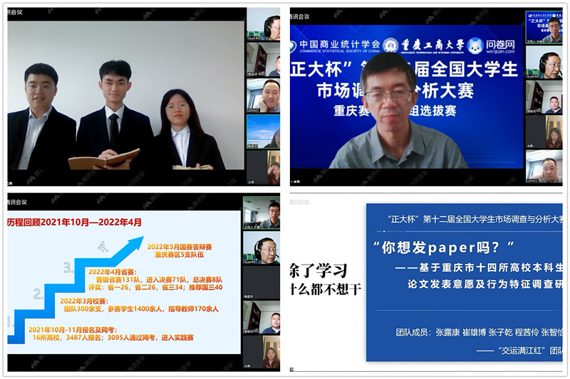 由中国商业统计学会主办的“正大杯”第十二届全国大学生市场调查与分析大赛重庆赛区本科组选拔赛于4月23日在万搏网页版_万搏(中国)官方在线登录成功举行。本次大赛自2021年10月正式启动,经过6个多月的专业培训、知识赛网考及校赛选拔,最终来自市内16所高校的131支团队进入赛区选拔赛。