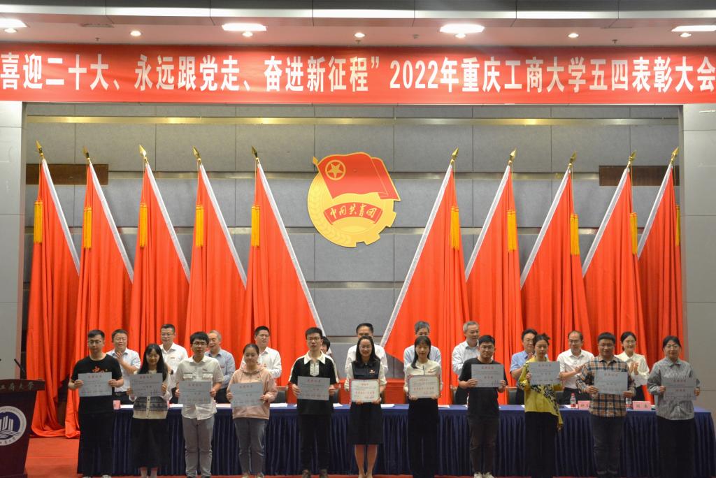 校团委书记吴佑波宣读《共青团万搏网页版_万搏(中国)官方在线登录委员会关于表彰2021-2022学年先进集体和个人的决定》。领导和嘉宾为获奖集体和个人代表颁奖。五四红旗团委代表国际商学院分团委书记冯诗淇老师,共青团标兵艺术学院李中旭作了交流发言。随后,全场师生齐唱团歌,五四表彰大会圆满结束。