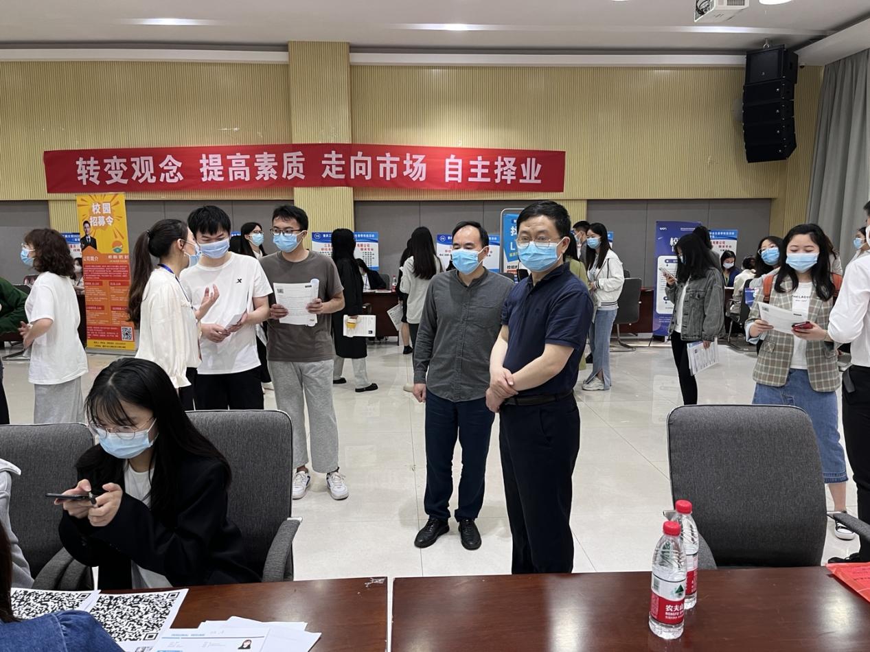 为进一步将“访企拓岗促就业”专项行动做实做细,近日,学校招生就业处、各学院持续开展“访企拓岗”行动招聘会,校长孙芳城,党委副书记宋豫,校党委常委、副校长陈运超,校党委常委、纪委书记、监察专员周航多次到招聘会现场指导工作。