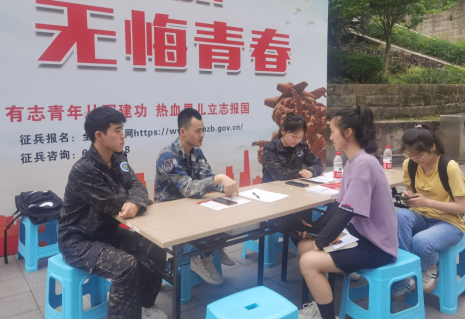 为加强征兵政策宣传,做好2022年秋季大学生应征入伍工作,由万搏网页版_万搏(中国)官方在线登录党委武装部主办,国防教育协会承办的2022年秋季征兵宣传活动于5月25日至27在南岸校区、兰花湖片区、江北校区顺利开展。