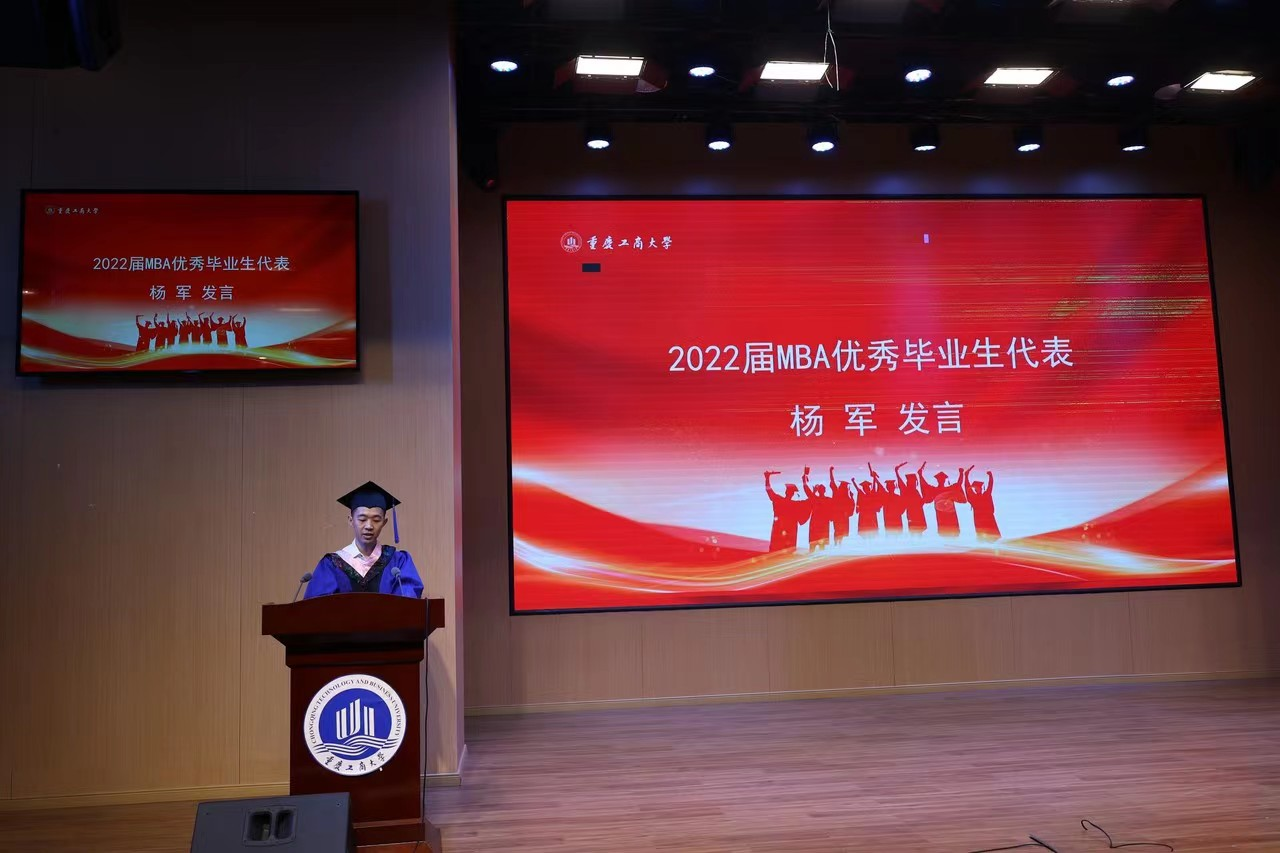 MBA事业导师代表、渝丰科技股份有限公司总经理曾令果博士回忆了自己的博士毕业经历,希望大家珍惜在校园的学习时间,毕业不代表生活结束,相反它正是全新的开始。大家要坚信不断的努力,不断地去创造,不断地为学校、为自己、为自己身边的人,树立积极向上的榜样。只要努力,一切将会是最好的安排。
