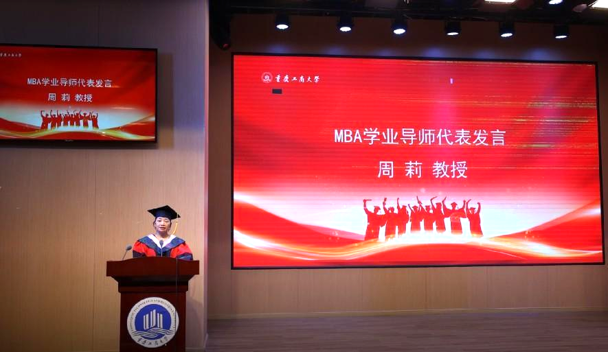 MBA学业导师代表周莉教授给毕业生们送上了三句祝福:一是衷心祝福大家顺利毕业;二是祝未来的大家保持并充满激情;三是祝愿充满激情的大家幸福安康,拥抱世间一切美好。