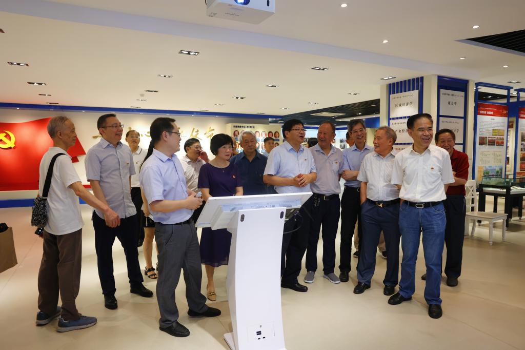 为庆祝中国共产党成立101周年和我校建校70周年,7月1日上午,我校举行“庆祝七一重温70年校史”学校退休校领导参观校史馆活动。吴应发、张柏村、戴宏民、周希贤、王崇举、廖元和、张宗礼、甘德潜、黄朗、高古城、黄志亮等11位退休校领导,学校党委书记李志雄,党委副书记、校长孙芳城,党委副书记宋豫,党委组织部、党委宣传部和党政办、离退休工作部相关职能部门负责人参加。活动由宋豫主持。