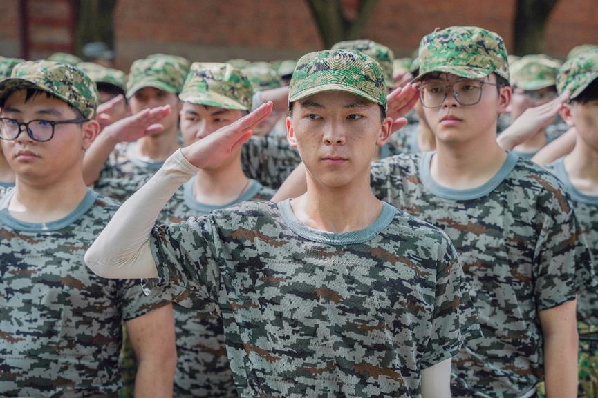 整齐划一的步伐,坚强有力;响彻云霄的号角,心间回荡;目光如炬,我们向青春致以庄严的军礼;烈日炎炎,我们回敬它以青春的蓬勃朝气。