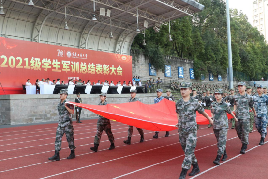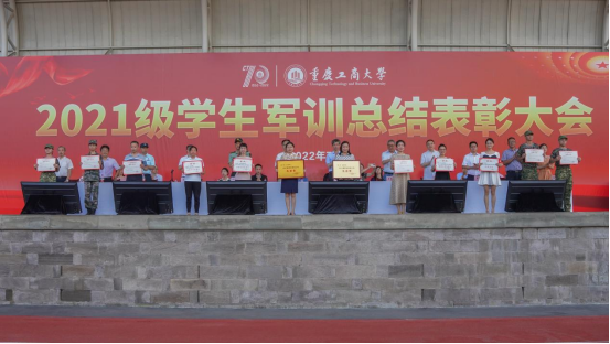 7月15日上午,我校2021级学生军训总结表彰大会在南岸校区如期举行。学校党委书记李志雄,党委副书记、校长孙芳城,党委常委、副校长李国军、李敬,南岸区人民武装部大校政治委员朱和胜、政治工作科科长陈胜强,学校党委常委、宣传部部长华杰出席大会。大会由李国军主持。