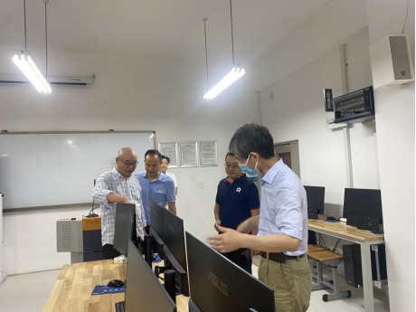 孙芳城实地查看了片区教室、实验室,听取了学院负责人对两院暑期维修改造工作、开学准备情况以及近期线上教学运行情况的汇报。孙芳城肯定了两院近期开展的相关工作,他指出,要继续以专业融合及资源共享的思路协调教学资源,改善学院办学条件,提升办学质量;要落实重庆市教委关于做好开学准备工作、疫情防控工作和做好迎接党的二十大相关安全稳定工作的要求,安全有序做好学生返校相关工作,维护好兰花湖片区的和谐稳定。