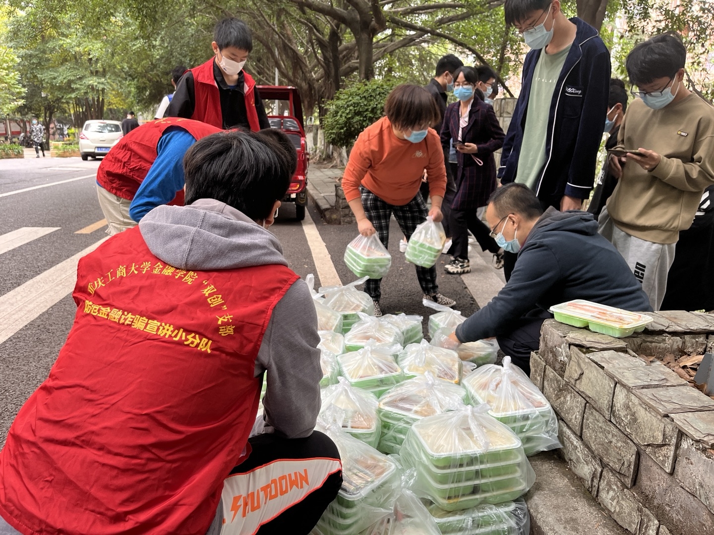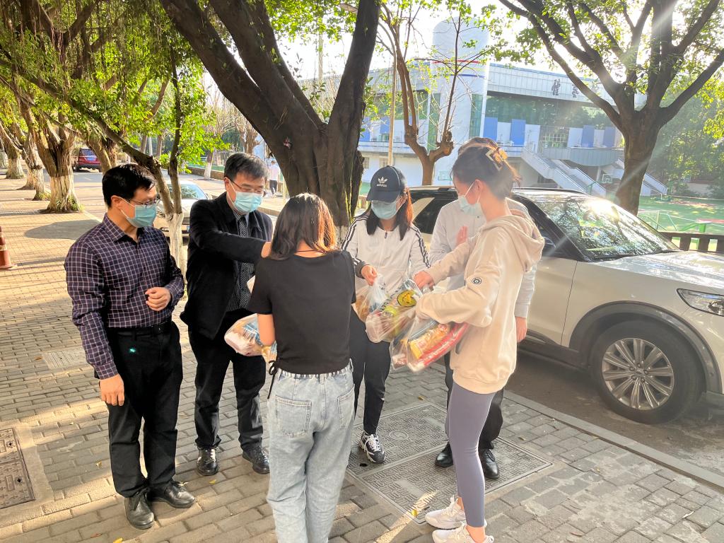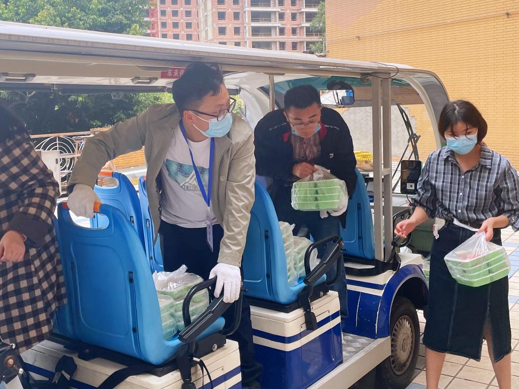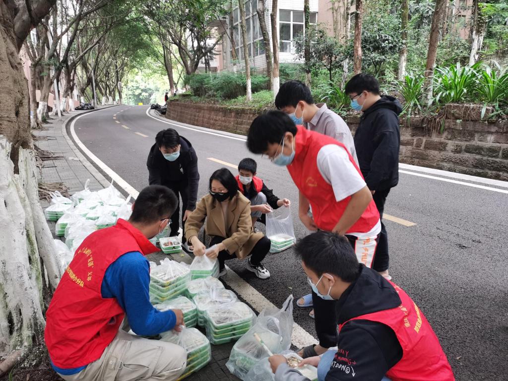 疫情袭来,经济学院迅速启动疫情防控工作预案,成立学院疫情防控指挥办公室、疫情报告组、维稳宣传组、后勤保障组,全面做好协调调动、统计上报、师生心理疏导、后勤保供等各项工作,确保线上教学、学生用餐、科研活动等正常进行。学院招募党员志愿者,组建党员先锋队,奔赴防“疫”一线。在一天时间里,10余名党员干部职工主动请愿,不顾自己的“小家”,义无反顾踏上保卫“大家”的路。为了让学生能吃上一口热乎的饭菜,他们卷起袖子加入“盛饭大军”“送饭大军”的队伍,还细心采购了一批零食、水果,送到各学生宿舍楼,为学生学习生活保驾护航。