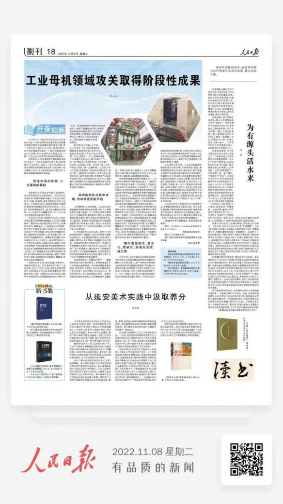 2022年11月8日,我校院士专家工作站蒋庄德院士在《人民日报》发表题为“工业母机领域攻关取得阶段性成果”的文章。