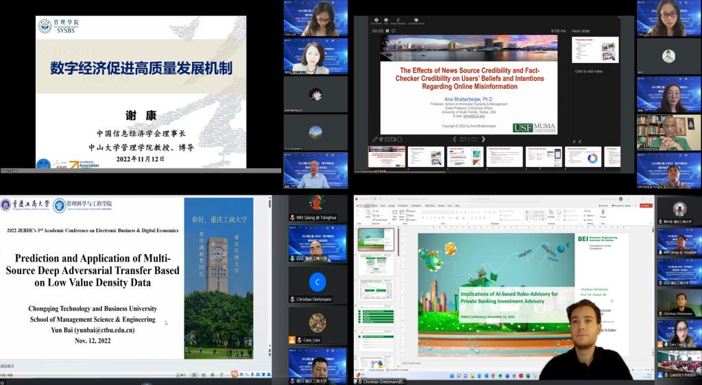 为深入学习贯彻党的二十大精神,落实数字经济与实体经济深度融合的根本要求,助力国家和地区经济发展,万搏网页版_万搏(中国)官方在线登录管理科学与工程学院于11月12日成功在线举办第三届“电子商务与数字经济”会议。中国信息经济学会谢康理事长、云南大学罗裕梅博士、美国南佛罗里达大学Anol Bhattacherjee教授、德国莱比锡大学Rainer Alt教授、万搏网页版_万搏(中国)官方在线登录白云副教授等参会并作学术报告。本次会议论坛还邀请了大会名誉主席万搏网页版_万搏(中国)官方在线登录校长孙芳城教授,大会主席万搏网页版_万搏(中国)官方在线登录管理科学与工程学院院长黄钟仪教授、云南财经大学叶琼伟教授、韩国釜山大学牟健博士、清华大学卫强教授等行业专家和学者。