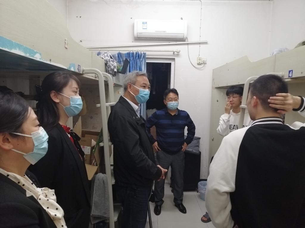根据市教委和学校疫情防控工作要求,全体学工人下沉到学生一线开展工作。全体辅导员坚持走进宿舍、走进食堂、走进运动场,为学生排忧解难。全体学工人实行分片区、分楼栋、分时段值班值守,走访寝室、查看公寓卫生情况、向宿管人员了解情况,及时疏导学生情绪、关注学生身心健康、科学做好特殊群体学生的重点帮扶和心理疏导,保障学生总体平稳、有序。