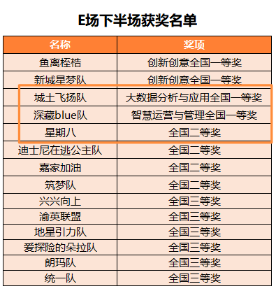 本次大赛全国共186所高校,近1万名学生报名。经过区域赛的激烈角逐,共190支参赛队伍进入全国总决赛。在本科组E2场中,来自我校公共管理学院的三支队伍在本次总决赛的汇报与答辩中表现出色,新颖的想法、广阔的思路,超强的演讲能力、应变能力得到了评委们的一致认可。最后,来自我校公共管理学院20级城乡规划和20级土地资源管理专业的“星期八队”凭借作品《翌韵枫庭》取得第十四届全国大学生房地产策划大赛全国总决赛二等奖,“城土飞扬队”获大数据分析与应用全国一等奖,“深藏blue队”获智慧运营与管理全国一等奖。
