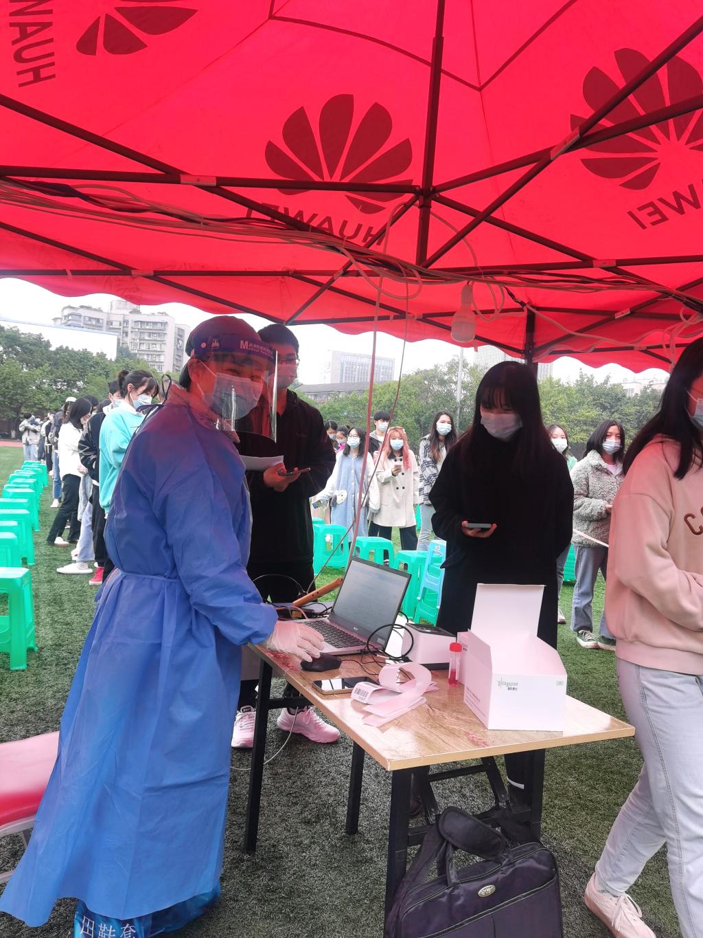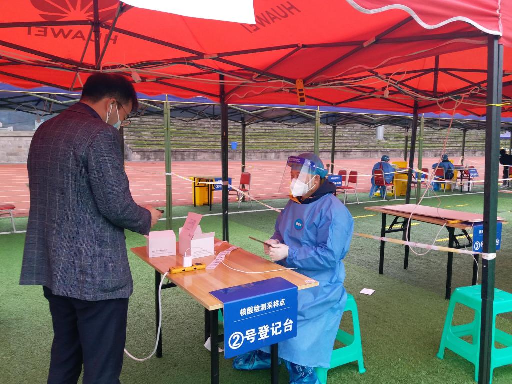 “好的,没有问题,马上回学校”挂掉电话之后,经济学院辅导员喻智成迅速收拾了几件换衣物,简单嘱咐了家人几句之后,就拖着行李箱回到学校,开始了忙碌的工作。宿舍外,他拿着十几分钟前从校医院拿的感冒药,拨通了学生的电话,“戴好口罩,穿上厚外套,我在宿舍楼门口等你”。当他把药交到了学生手里之后,还不忘叮嘱学生注意防寒保暖,合理安排作息时间。操场上,熟悉的声音再次传来,“同学们,保持1米间隔,打开渝康码,扫码确认信息后进行核酸采样”,这已经是他第5次参与核酸检测登记志愿服务。