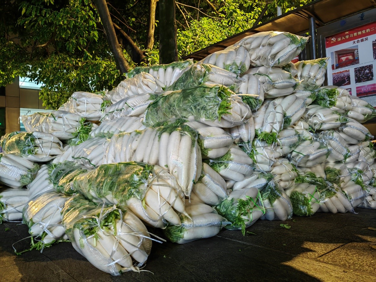 近日,学校的疫情防控形势牵动着广大校友和关心学校发展的社会爱心人士的心,当得知学校保供压力大,蔬菜、粮油等物资供应紧张时,为了帮助学校师生在抗疫时吃饱饭,多名校友和爱心人士克服疫情影响下采购、物流等重重困难,向学校捐赠20余吨蔬菜等物资,在学校党委统战部、校友办和后勤处的协调下,已于11月25日夜间抵达学校,将有效缓解食堂供给压力。其中,石柱蔬菜协会和电商协会向我校兰花湖片区和江北校区捐赠了包括蔬菜、大米和食用油在内的约7吨左右的物资;我校校友联系潼南区工商联合会和潼南区女企业家商会向我校南岸校区和江北校区捐赠了萝卜、白菜等15吨爱心蔬菜。