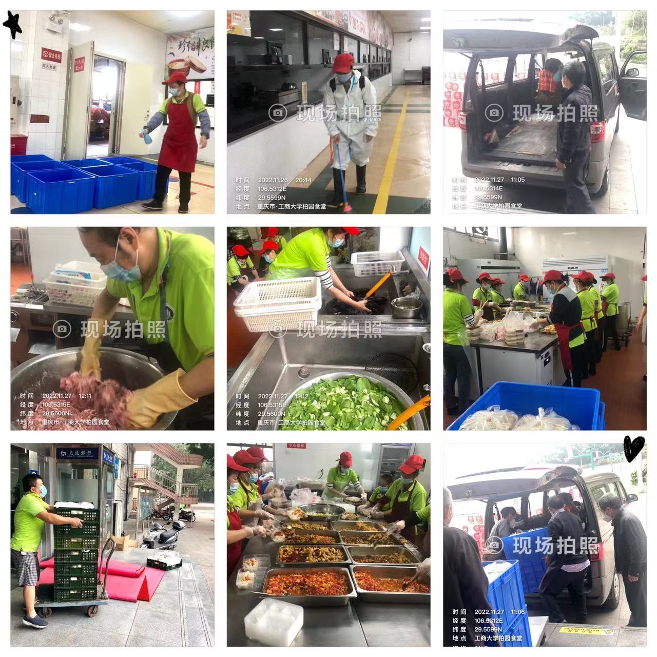 江北校区管委会有序开展校园管控、核酸检测、物资采购转运、送餐保供等工作。24小时不间断值守的保安们是校园内的一抹“守护蓝”,撑起了一把把“守护伞”;为保障三餐供应连轴转的食堂工作人员们“食”刻打包着一份份爱心餐食;紧绷住弦不放松的宿管阿姨们坚守楼栋,积极配合各项疫情防控工作。