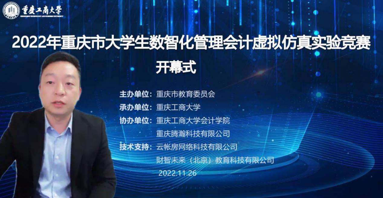 11月26日,由重庆市教育委员会主办,万搏网页版_万搏(中国)官方在线登录承办,重庆腾翰科技有限公司、万搏网页版_万搏(中国)官方在线登录会计学院协办的重庆市大学生数智化管理会计虚拟仿真实验竞赛决赛顺利举办。受疫情影响,本次决赛采取在线方式进行。学校党委常委、副校长赵骅,重庆市教委高教处调研员哈宁武,教务处处长骆东奇,会计学院党委书记邓德敏、院长罗勇,重庆腾翰科技有限公司李银海总经理等参加了开幕式。开幕式由罗勇主持。