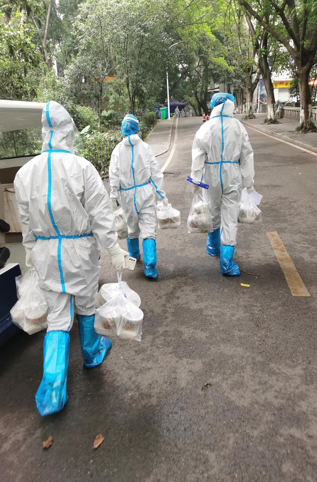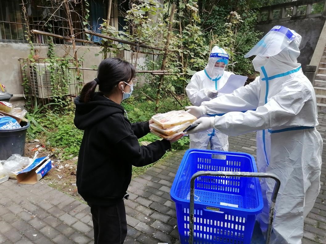 南岸校区家属区疫情发生以来,所辖26个楼栋进入临时管控。为了让隔离在家的1000余名师生、离退休职工、家属及住户及时吃上饭、吃好饭,21名教职工志愿者组成了南岸校区家属区送餐组,为大家的一日三餐提供配送服务。他们每天数次往返于食堂与家属区各楼栋之间,双手提,众人抬,爬坡上坎,尽全力让每位居民都能吃上热乎的饭菜。据不完全统计,送餐组的志愿者们为家属区的师生、离退休职工及住户配送的餐食超过了10000份。除此之外,志愿者们还保质保量地完成了自己职责范围之内的工作,专任教师要备课上课,行政人员要处理日常事务……他们用实际行动守好了学校疫情防控工作的一方阵地。