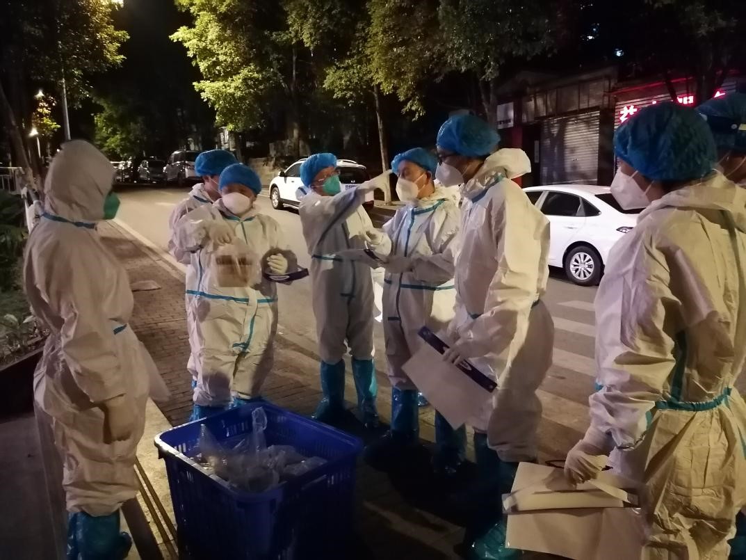 本轮疫情以来,学校党委迅速启动疫情防控应急预案,第一时间面向党员干部、教职员工征集志愿者,分别组建了校内志愿者服务队和家属区专项志愿者服务队,江北校区和兰花湖片区志愿者突击队、核酸采集应急支援志愿服务队,同时动员和号召居家办公的干部职工主动下沉社区,参加志愿服务。征集令一经发出,近300名党员干部、教职工逆行而上、冲锋在前,主动请缨奔赴抗“疫”一线。在这群投入战“疫”队伍的教职工志愿者中,有夫妻,有母子,有的甚至全家齐上阵,凝聚起了重工商大人团结战“疫”的坚强力量。