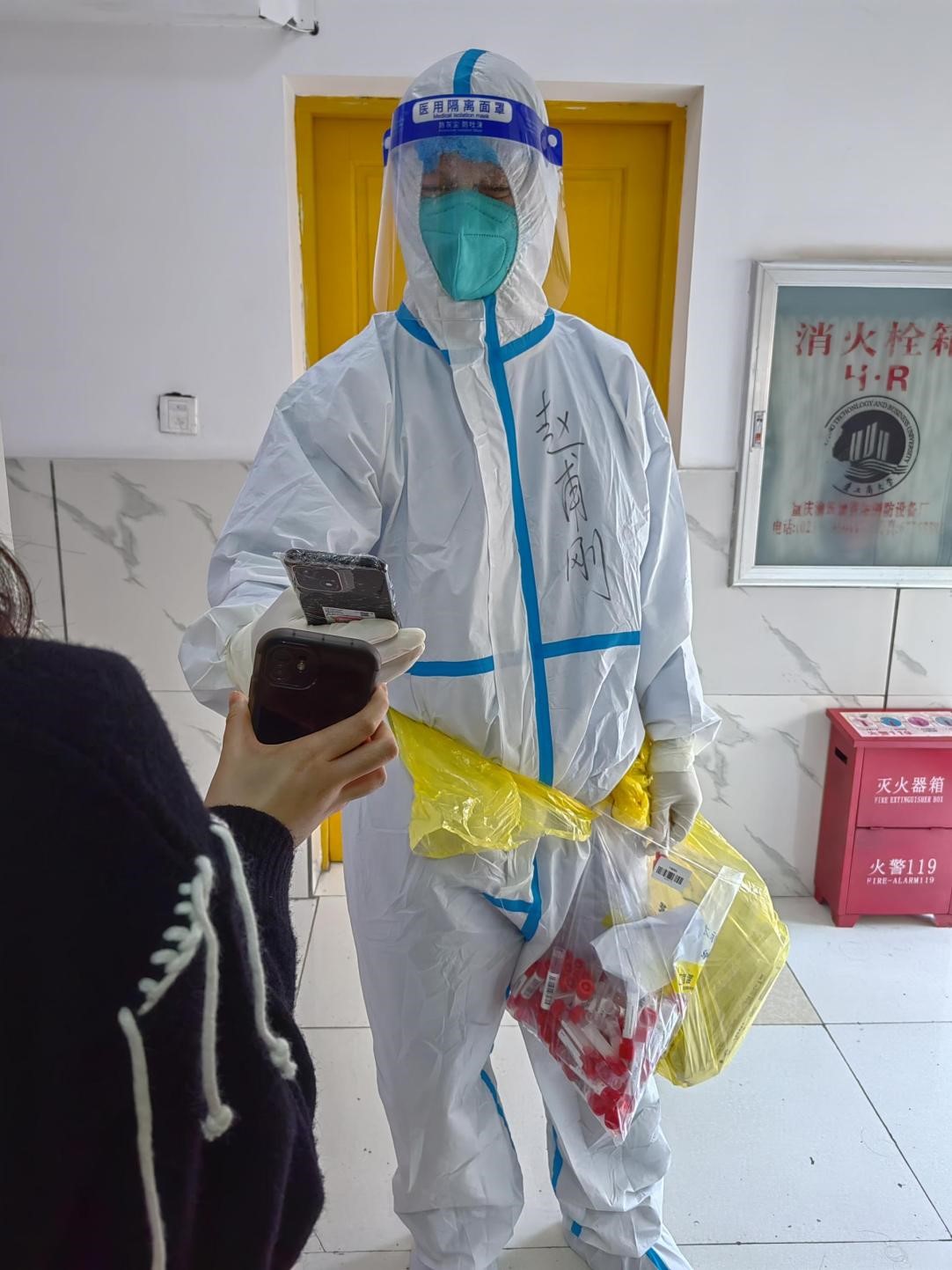 作为临床医学博士,人事处曾一同志主动发挥专业优势,在学校核酸采集工作人手紧缺的情况下,积极报名参加核酸采集工作。学校第一批上岗的核酸采集志愿者中,她是唯一一名女同志。这一次采集工作从下午2点持续工作到晚上10点。在这8个小时里,她不断重复做好手部消毒、拆开包装、喉部采样、折断咽拭子等一系列动作,哪怕手酸得打哆嗦,也坚持保证步骤完整、动作到位。她说这样才能确保采样有效。