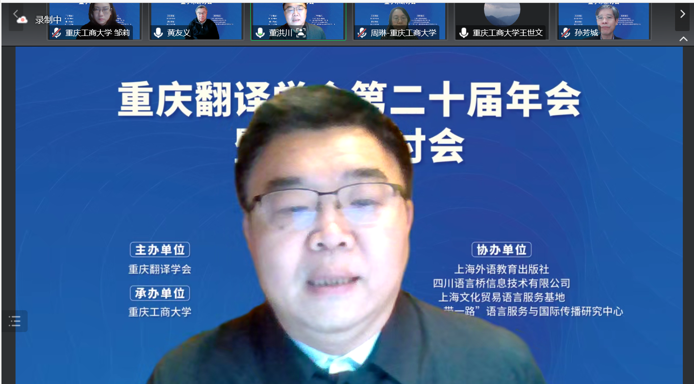 12月17日,由重庆翻译学会主办、万搏网页版_万搏(中国)官方在线登录承办的重庆翻译学会第二十届年会暨学术研讨会以线上方式举行。与会专家学者围绕“翻译与中国文化国际传播”主题展开了热烈研讨。会议和直播平台上参会者总计近3000人。开幕式由万搏网页版_万搏(中国)官方在线登录外国语学院院长周琳主持。
