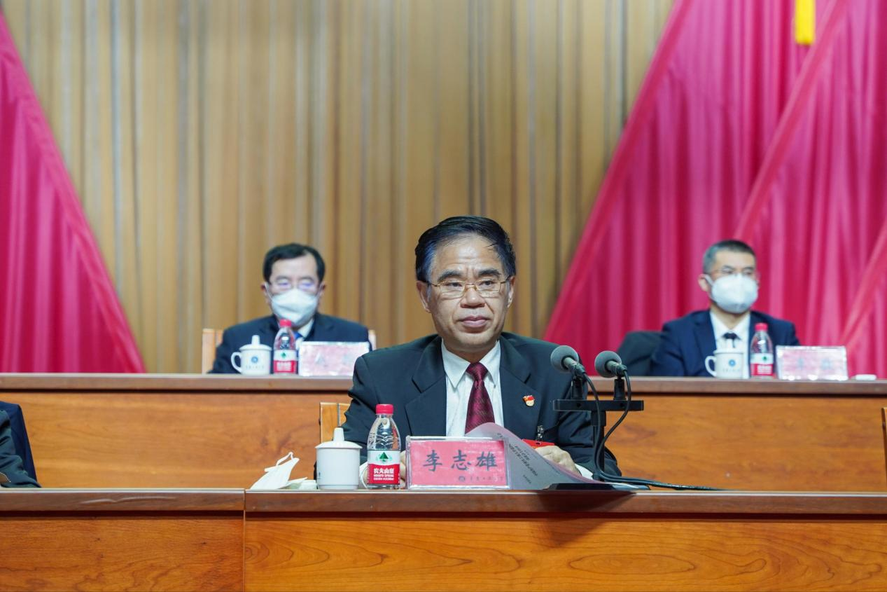 李志雄代表大会主席团对大会代表致以敬意,对全体工作人员表示衷心的感谢。李志雄在讲话中指出,这次大会认真总结了过去五年多以来学校取得的成绩和经验,客观分析了存在的问题和不足,提出了未来发展的使命目标、战略安排和重点工作任务。大会审议通过的党委报告、纪委工作报告和各项决议,选举产生的学校新一届党委班子和纪委班子,是全体党员集体智慧的结晶,充分体现了全校师生员工的共同愿望,对当前及今后一个时期学校改革发展各项事业具有重要影响和重大意义。