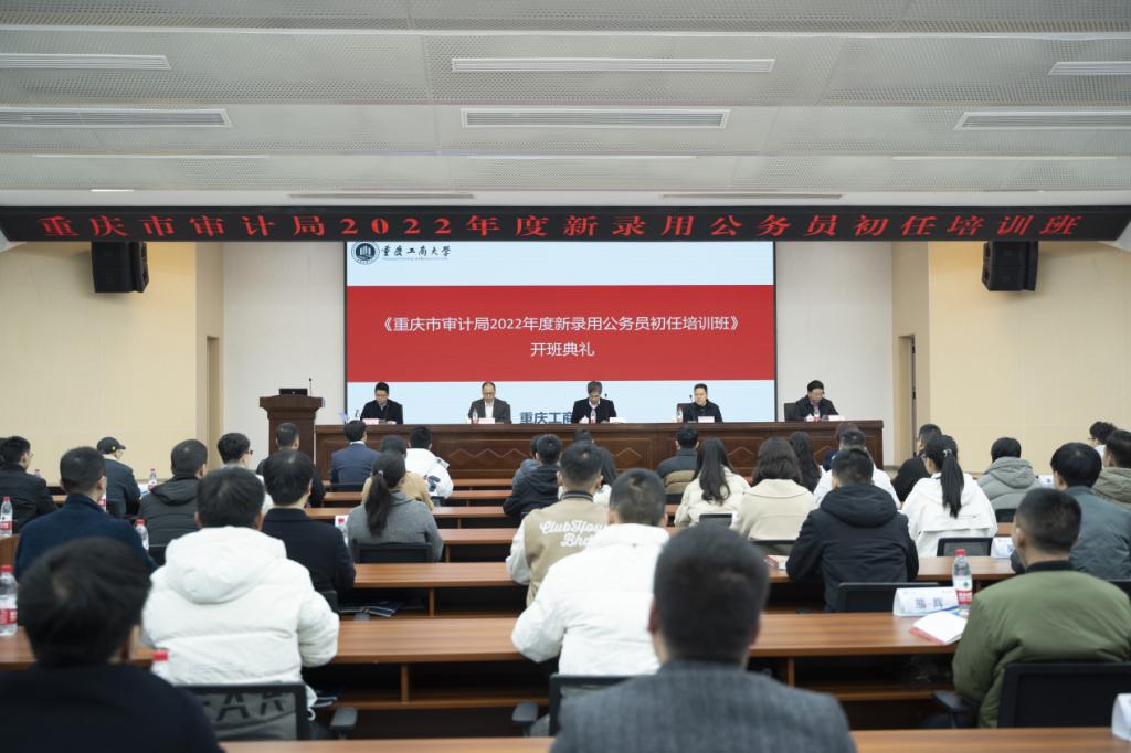 2023年2月20日,由重庆市审计局主办,我校会计学院承办的“重庆市审计局2022年度新录用公务员初任培训班”开班仪式在南岸校区明德楼1019报告厅举行。重庆市审计局副局长戴希、学校孙芳城、重庆市审计局组织人事处处长许川、副处长张斌,会计学院党委书记邓德敏、院长罗勇、副院长钟廷勇,以及培训班74名学员等出席了开班仪式。开班仪式由罗勇主持。