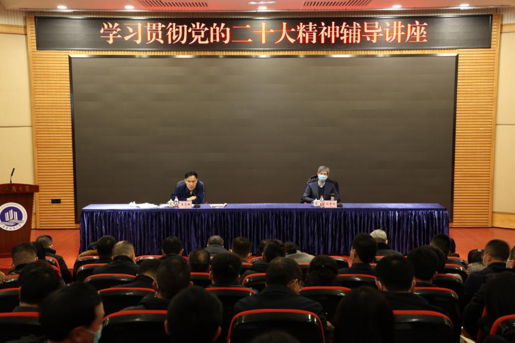 李志雄在辅导报告中指出,学习宣传贯彻党的二十大精神是我校当前和今后一个时期的首要政治任务。党的二十大报告深刻阐释了新时代坚持和发展中国特色社会主义的一系列重大理论和实践问题,概括提出并深入阐述了中国式现代化理论,是党的二十大的一个重大理论创新。习近平总书记在新进中央委员会的委员、候补委员和省部级主要领导干部学习贯彻习近平新时代中国特色社会主义思想和党的二十大精神研讨班开班式上的重要讲话,是党的二十大报告的重要续篇,全面回顾了不同历史时期党团结带领人民为现代化而奋斗的光辉历程和作出的重大贡献,深刻阐明了党的领导直接关系中国式现代化的根本方向、前途命运、最终成败。习近平总书记的讲话深刻阐述了中国式现代化的一系列重大理论和实践问题,是对中国式现代化理论的极大丰富和发展,对于我们进一步深学笃行党的二十大精神、努力在新时代新征程上开创党和国家事业发展新局面,以中国式现代化全面推进中华民族伟大复兴,具有十分重要的意义。