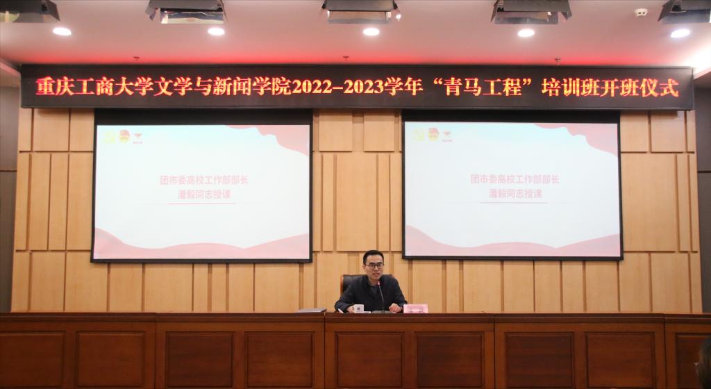 团市委潘毅部长为学员们做了党的二十大精神宣讲。他对学员们提出了三点要求:一是学生骨干要形成对“青马工程”培训的正确认知;二是将学习成果转化为抓好工作的政治定力、思想自觉和实际行动;三是要学思践悟、知行合一,自觉将党的二十大精神与专业学习相结合,践行中国特色“马克思主义新闻观”。
