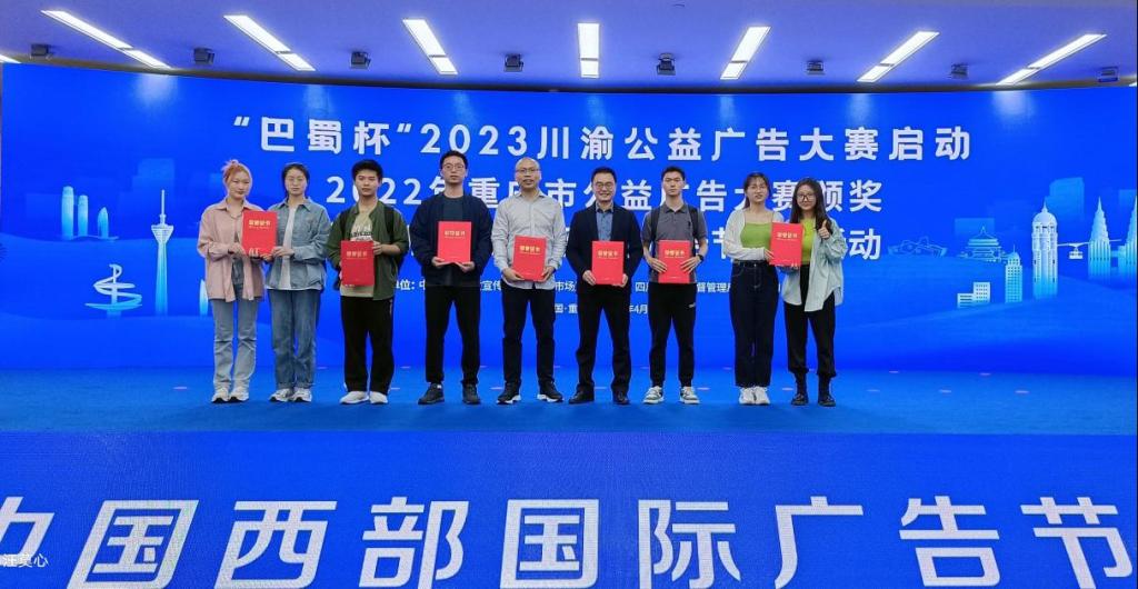 本次活动颁发了“喜迎党的二十大”重庆市2022年公益广告大赛奖项,我校文学与新闻学院获“组织奖”,文学与新闻学院广告系系主任王凌峰老师获“优秀指导教师奖”,由文学与新闻学院王世华、陈绍富老师,艺术学院雷杰然同学等创作的视频和平面公益广告获银奖1项、铜奖1项、优秀奖1项。