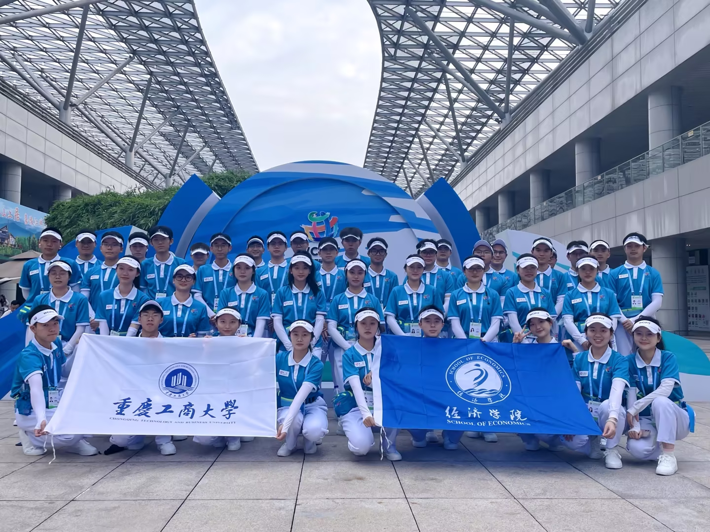 5月21日,由商务部、水利部、国务院国资委、中国侨联、中国贸促会和重庆市人民政府共同主办的第五届中国西部国际投资贸易洽谈会(简称"西洽会")在重庆悦来国际会议中心落下帷幕。我校经济学院选拔出的40名“蓝精灵”志愿者经过系统培训和考核,全程参与了西洽会现场志愿服务工作。