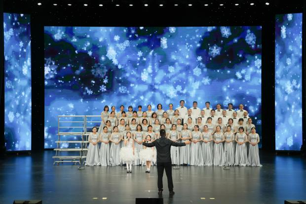 《灯火里的中国》《雪花》《不忘初心》《我的中国心》《祖国不会忘记》和《我爱这蓝色的海洋》一首首耳熟能详的红歌回荡在场馆内,一句句铿锵有力的歌词映入脑海。