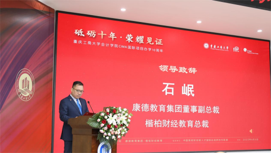 活动最后,骆东奇作了讲话。他用非常成功、非常突出、非常期待对CIMA办学十年进行了肯定和总结。他表示十年是一个阶段,不仅需要总结,更需要以此为起点乘势而上,力争未来十年将CIMA项目建成国际化办学的新“标杆”。