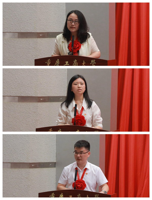 会上,先进基层党组织代表、工商管理学院党委书记陈亚惠从坚持政治引领、促进三链融合、实现四个目标三个方面汇报了学院党建工作情况;优秀党员代表、党政办公室秘书科科长杨婷以《念好“三字诀”,奋力书写发展进步新篇章》为题,分享自身作为基层党员和年轻干部的工作体会;优秀党务工作者代表、全国党建样板支部创建单位人工智能学院学生一支部书记徐国平结合自身作为支部书记的工作职责分享了他在党务工作和创先争优中取得的新成效、新突破。