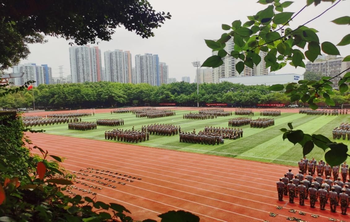 莘莘学子组成一块块方队,