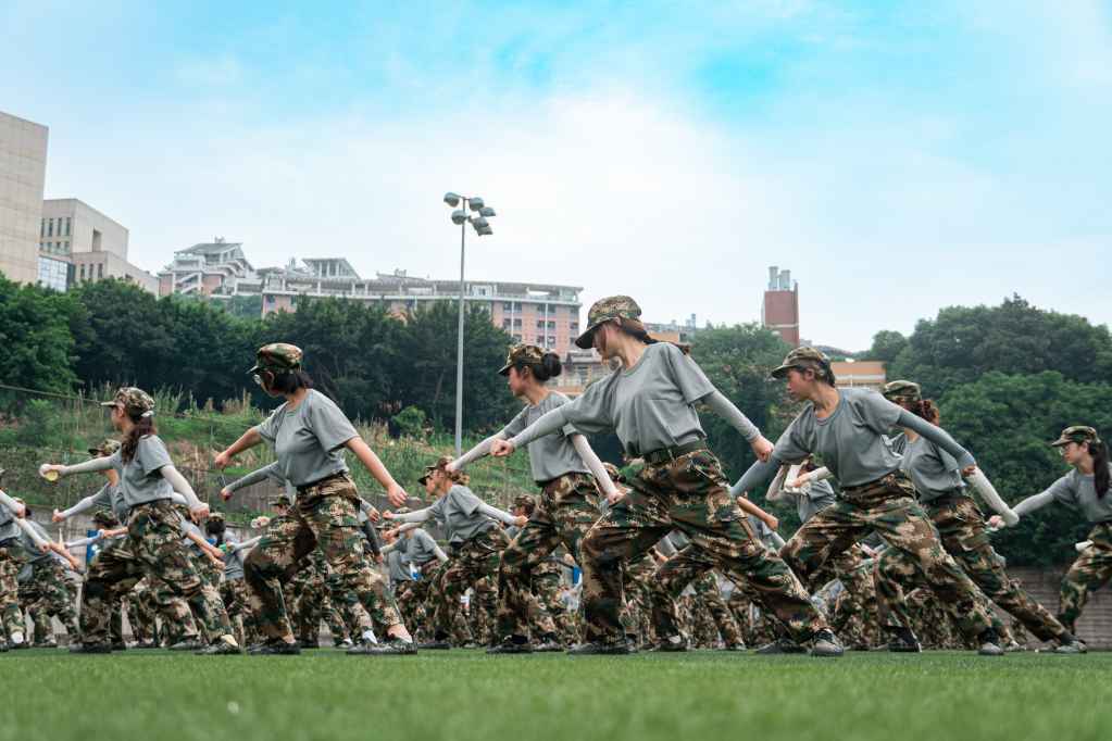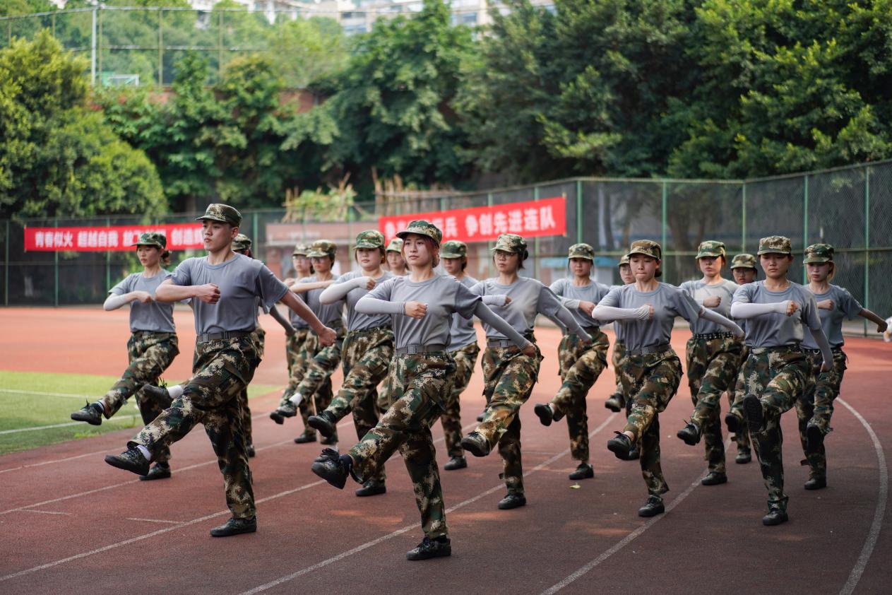 任汗水打湿脊背,任疲惫爬满全身。随着日光逐渐张扬,同学们的状态渐入佳境。拉练比赛的歌声此起彼伏,欢呼,鼓掌,大笑,迷彩服舞动的身影引来排山倒海的呼喊。在教官们的带领下,我们接受了踏步、齐步、正步等基本的步兵课程训练,通过反复操练,我们逐渐掌握了正确的动作和姿势,并在这过程中体会到了团结的力量。