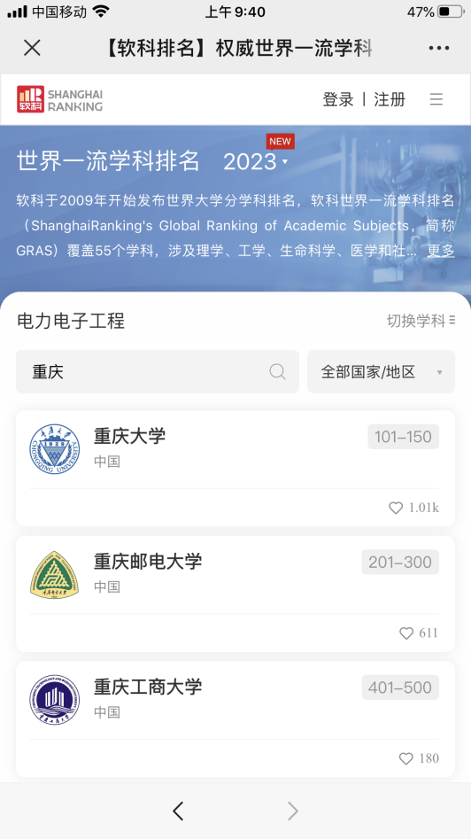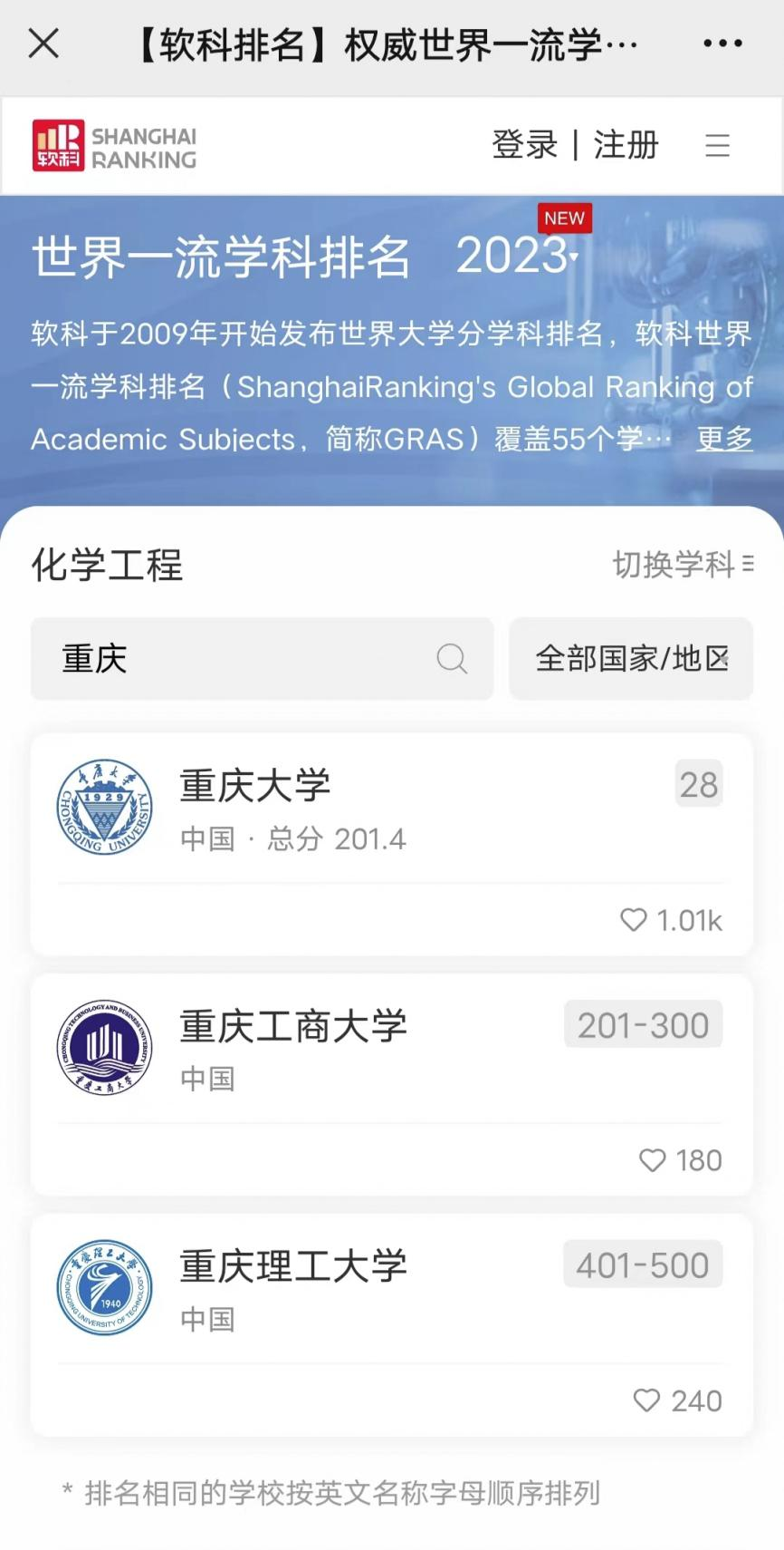 10月27日,高等教育评价专业机构软科正式发布2023“软科世界一流学科排名”。我校共有3个学科上榜。其中,化学工程学科进入世界一流学科排名前300,工商管理学学科进入世界一流学科排名前400,电子科学与技术学科进入世界一流学科排名前500。