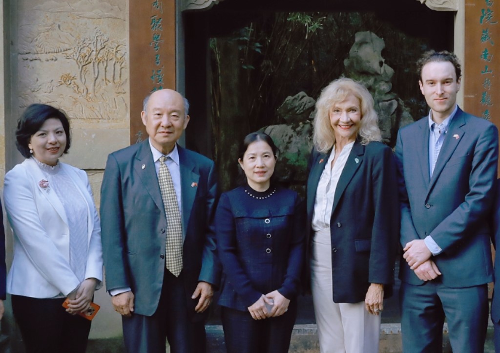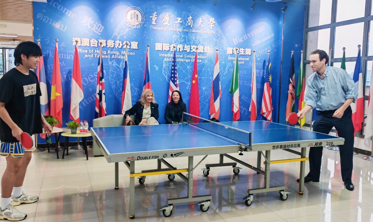 代表团在柏群陪同下参观了校史馆、图书馆和南山书院,并与留学生院师生代表开展了乒乓球友谊赛。