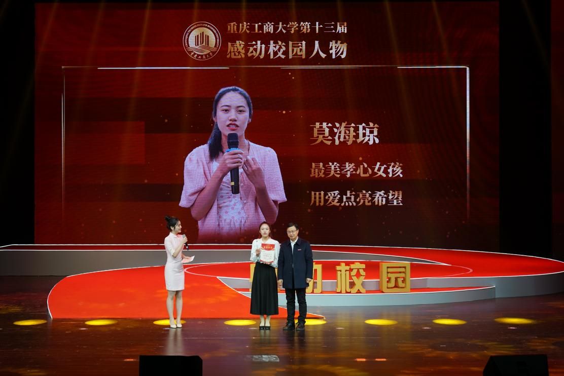 工商风采,榜样力量。12月8日下午,由学校党委宣传部、校团委主办,环境与资源学院、通识学院承办的万搏网页版_万搏(中国)官方在线登录第十三届“感动校园人物”颁奖典礼在学校剧场隆重举行。学校党委书记曾维伦,党委副书记宋豫,党委常委、副校长张波、李国军,党委常委、党委组织部部长郑夕春,党委常委、党委宣传部部长华杰,各职能部门负责人,评审委员会评委,各学院党委书记、院长,学院学生工作分管领导,教师代表以及学生代表等参加了颁奖典礼。