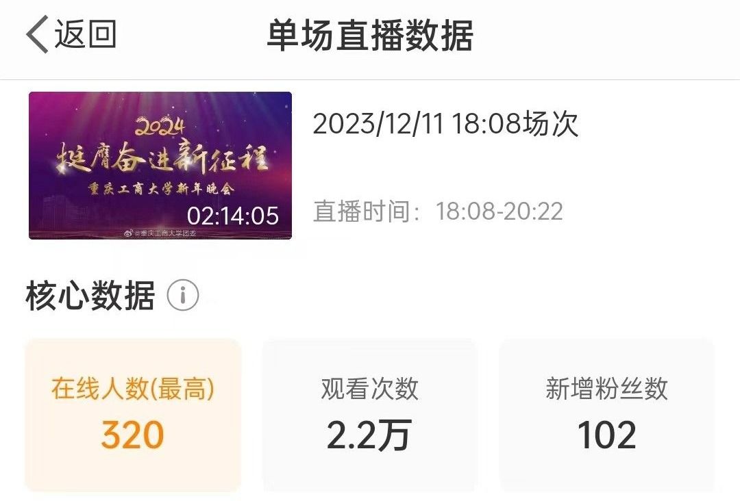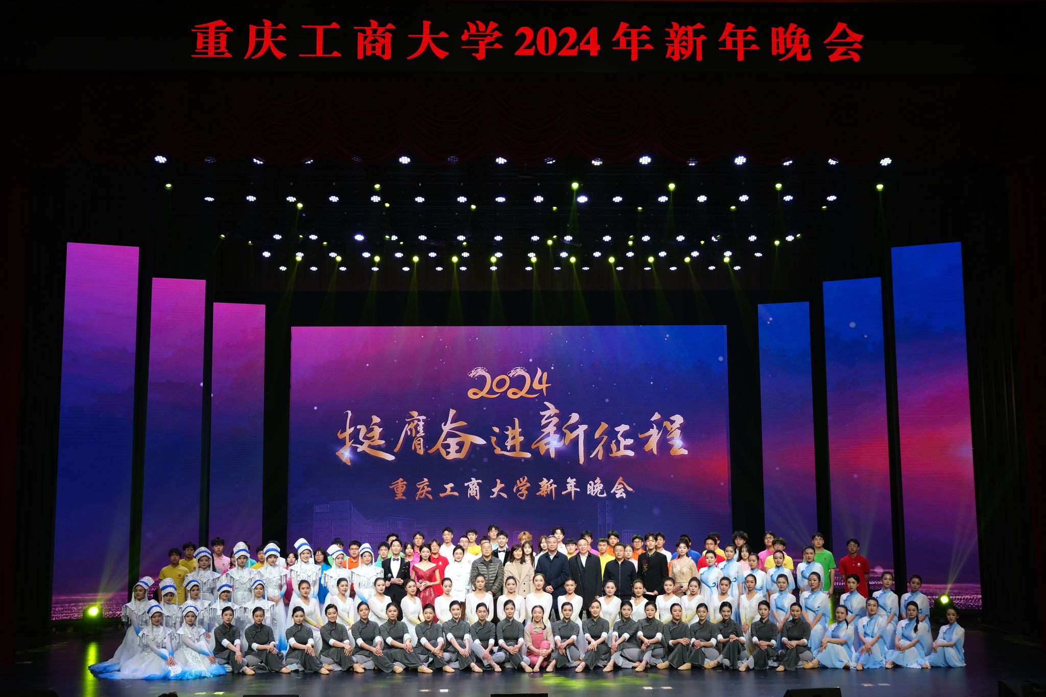 12月11日晚,“挺膺奋进新征程”万搏网页版_万搏(中国)官方在线登录2024年新年晚会在我校剧场隆重举行。校长温涛,党委常委、副校长李国军,党委常委、纪委书记、重庆市监委驻学校监察专员张海燕,党委常委、宣传部部长华杰,党委常委、统战部常务副部长陈松,教务处处长骆东奇,校团委书记吴佑波,校团委副书记胡婧婷,与全校近千名师生代表欢聚一堂,齐享视听盛宴。本次新年晚会汇聚歌曲、戏剧、舞蹈、朗诵等艺术形式,多个重庆市第七届大学生艺术展演活动一等奖节目登台演出,是我校美育教学成果的集中演示,美育育人成效显著。同时,校团委官方微博对晚会进行全程线上直播,师生、校友、学生家长在线观看人数达2.2万人,重工商大人线上线下欢聚一堂,共同启航新年。