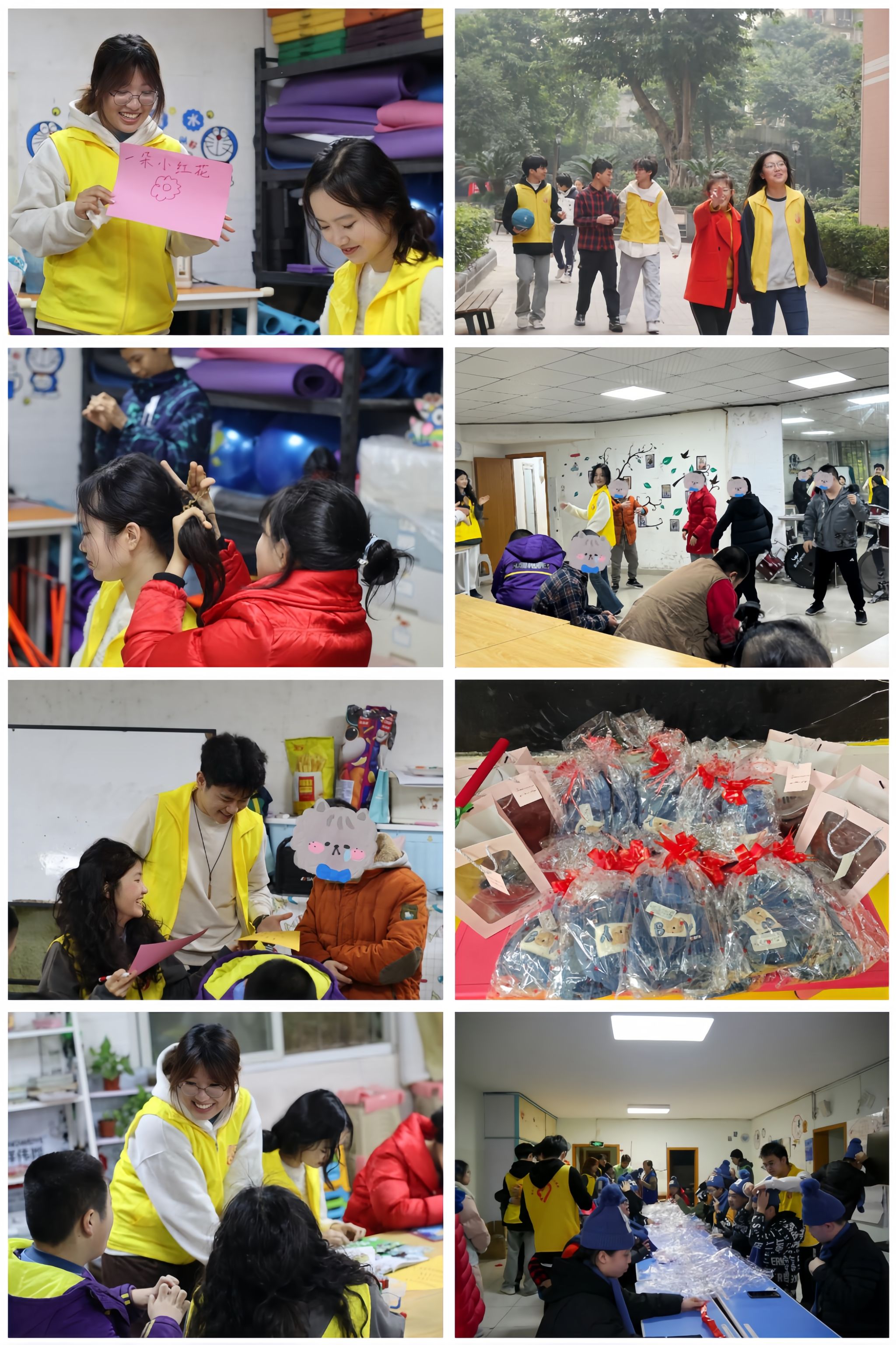 12月5日是第37个国际志愿者日,为进一步弘扬“奉献,友爱,互助,进步”的志愿者精神,推进“馨小青”阳光助残行动走深走实,12月8日,校青年志愿者协会“馨小青”助残志愿者分队组织了50名志愿者赴南岸区向日葵智力残疾人康复托养中心、渝中区瑞吉天爱残疾人康复训练中心、渝北区天爱残疾人康复训练中心开展“青阳暖冬,爱意滋长”冬日送温暖主题志愿活动,向三个服务基地的88名残障儿童和12位老师送去了冬日的温暖和新年的祝福。