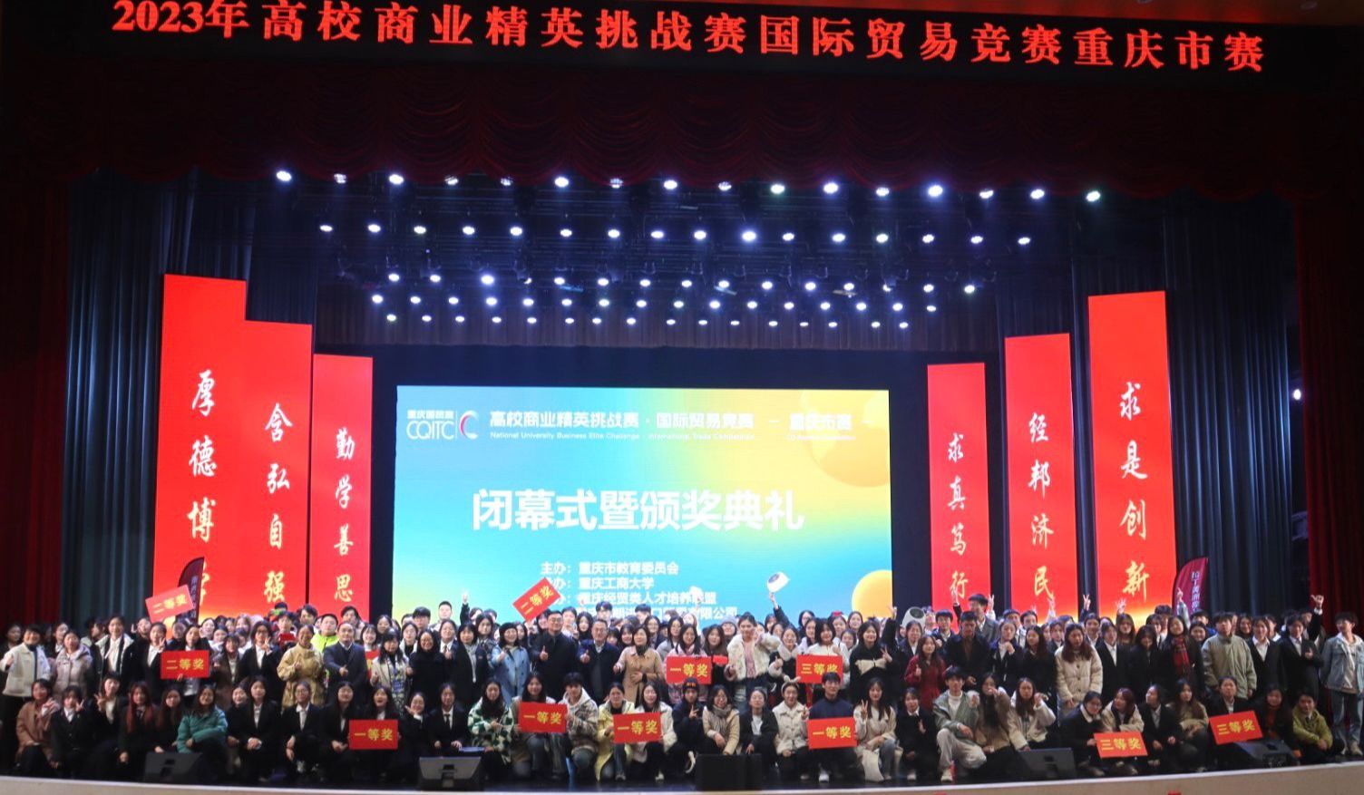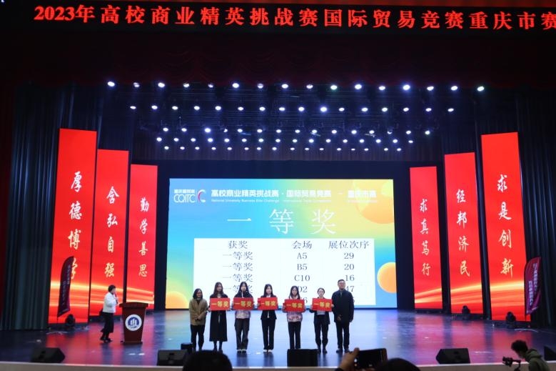 12月9日,由重庆市教育委员会主办,我校承办,重庆经贸类人才培养联盟和重庆西朗进出口贸易有限公司协办的2023年高校商业精英挑战赛国际贸易竞赛重庆市赛在我校南岸校区图书馆顺利举行。重庆市教育委员会高教处调研员李翔、我校教务处副处长韦晓兰、经济学院党委书记李自维、各评委代表以及全体参赛同学和指导老师参与闭幕式暨颁奖典礼。闭幕式暨颁奖典礼由经济学院院长宋瑛主持。