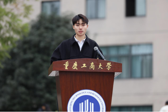 机械工程学院邓知宇同学作为学生代表身份宣读了劳动倡议书。他倡议全校师生树立“劳动最光荣”的观念。
