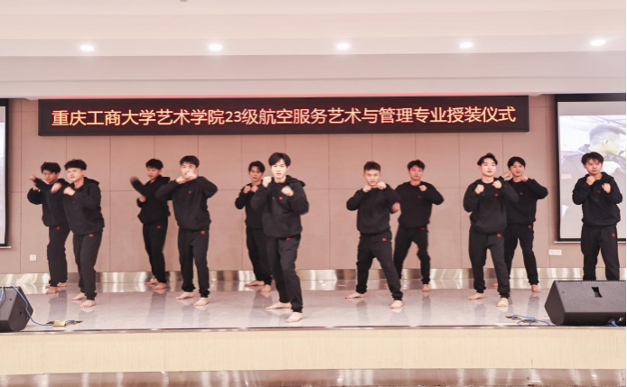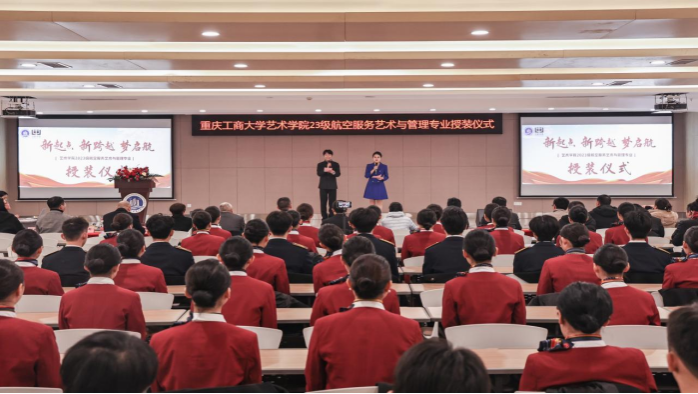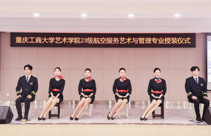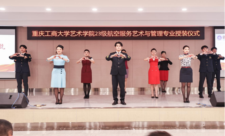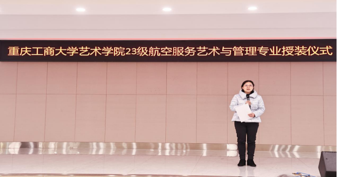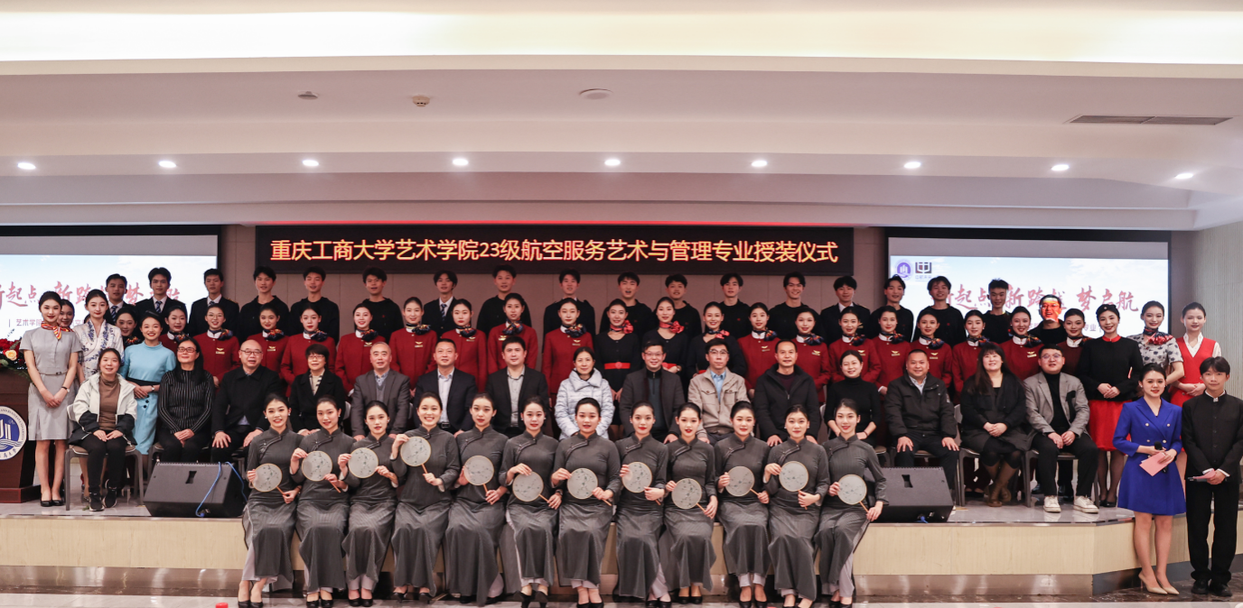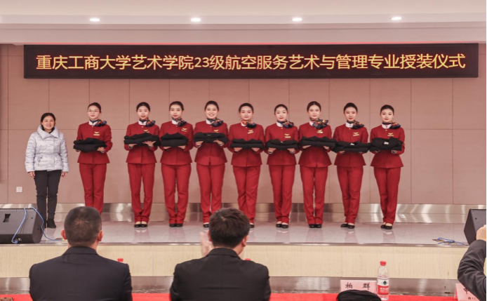 1月7日,艺术学院航空服务艺术与管理专业制服授装仪式在万搏网页版_万搏(中国)官方在线登录南岸校区学生就业指导中心报告厅举行。副校长柏群,北京中航未来教育集团董事长刘永、副总裁张鹏、教研总监张利,安徽云翔未来科技有限公司总经理彭春,党委学工部部长申卫东,国内合作发展处处长刘代成,教务处处长骆东奇,招生就业处处长钟增胜,财务处处长王燕,艺术学院党政领导、教师代表和全体2023级航空服务艺术与管理专业学生参加了活动。