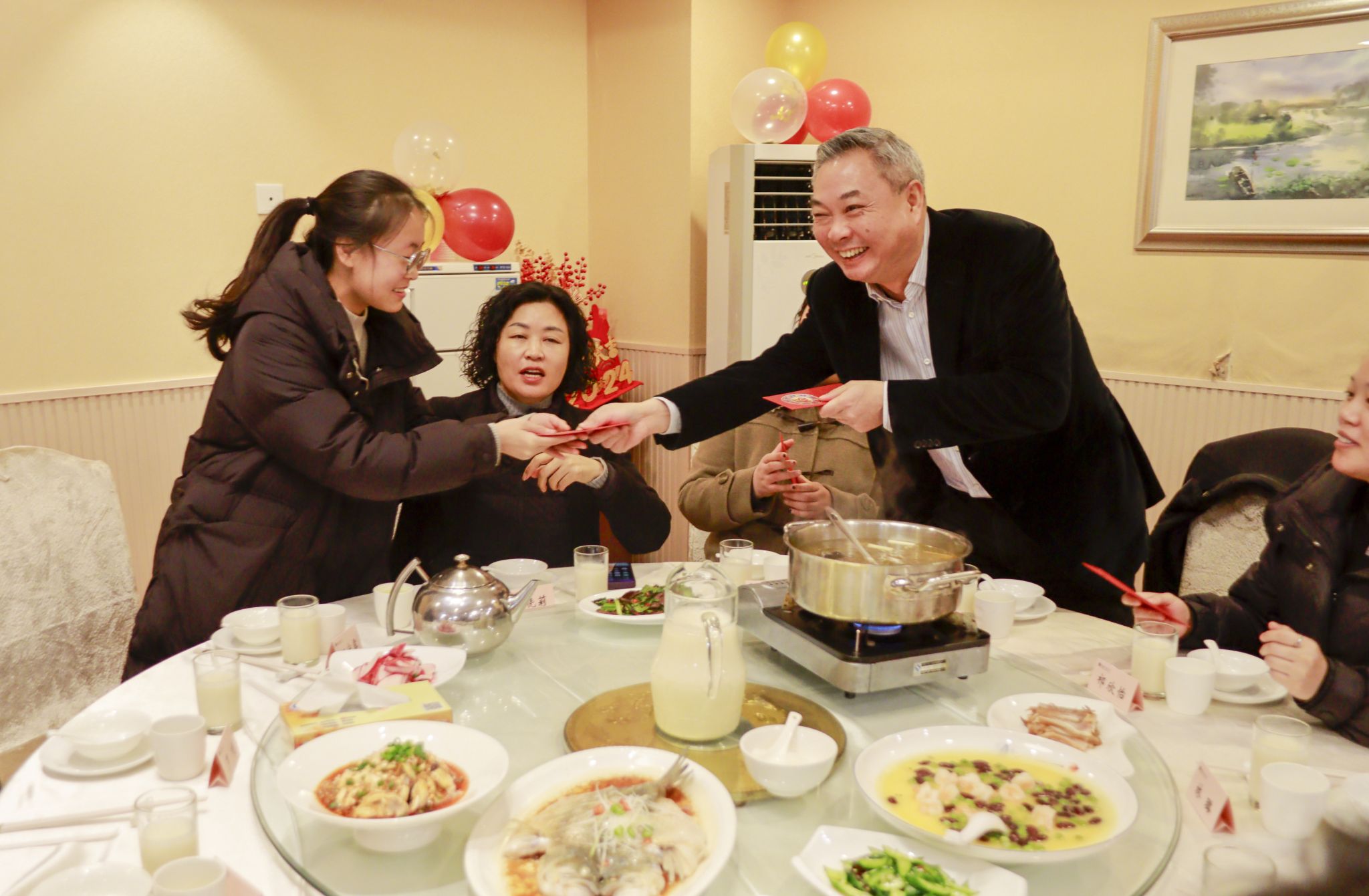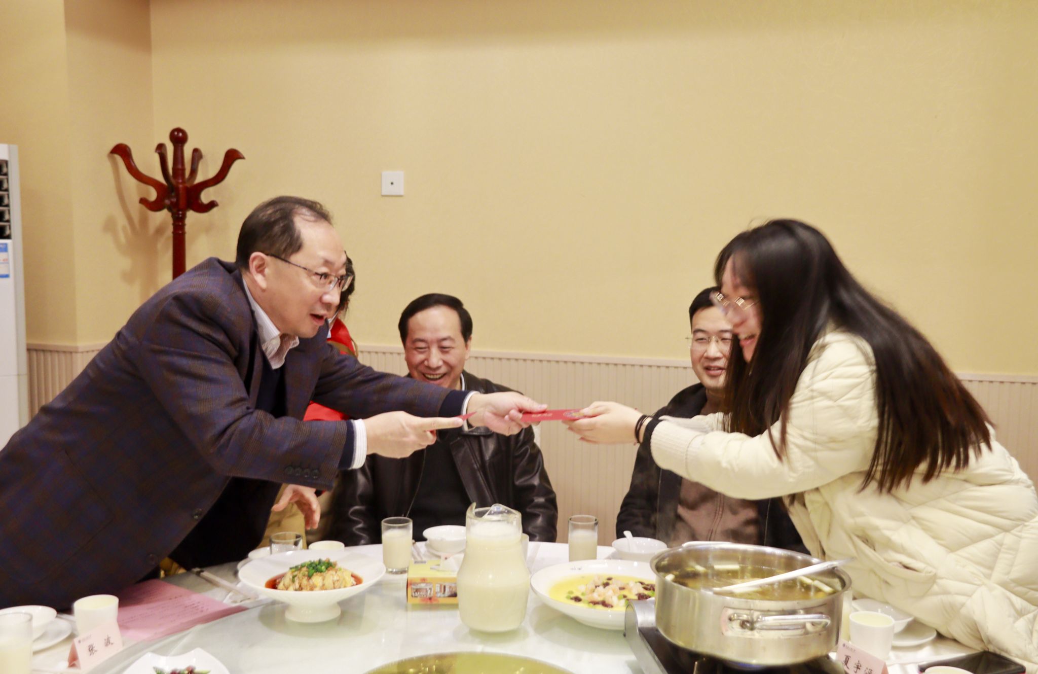 欢声辞旧岁,笑语迎新年。2月6日中午,学校2024年留校学生新春团拜会在兰园食堂三楼举行。学校党委书记曾维伦,校长温涛,党委常委、副校长张波、李国军,部分职能部门负责人和相关学院副书记,与寒假留校学生欢聚一堂,共度龙年春节。团拜会由李国军主持。