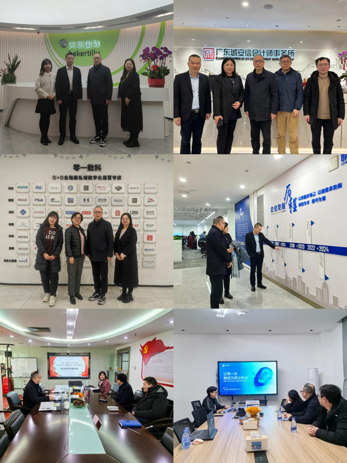 邓德敏一行先后走访了广州诚安信会计师事务所、广州中天粤会计师事务所、零一数科深圳总部、天职国际会计师事务所深圳分所等企业,与企业负责人、人力资源部门负责人等进行深入交流,了解企业经营状况、人才需求等方面的情况,详细介绍了学院人才培养及专业建设情况。在走访过程中,校企双方就订单培养、实习实践基地建设、专场招聘、科技合作、产学研合作等方面进行了深入探讨,达成了一系列合作意向,为促进校企合作不断深入发展奠定了良好基础。