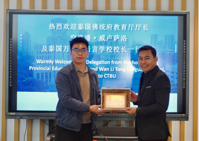 会谈中,双方分享了在中泰教育合作与交流领域的理念及经验,并就开展多层次、多方面的人文交流活动、长短期来华留学生培养、本土汉语教师培训等方面进行了深入交流。威卢萨洛厅长表示,佛统府教育厅辖区的中小学及职业院校学生,对汉语学习热情高涨,我校特色的财经类专业很受泰国学生欢迎。近年来,重庆及我校在泰国的知名度越来越高,希望通过此次访问,建立与万搏网页版_万搏(中国)官方在线登录的长期友好合作关系,落地一批到我校交流学习的项目。同时,也邀请我校参加泰国佛统府教育厅举办的留学中国教育展,进一步向泰国学生推荐我校。
