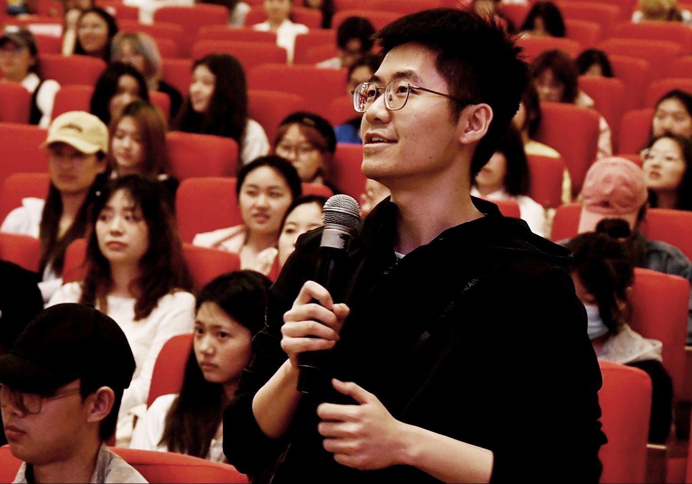 在报告会环节,高文成、田佳佳、赵洪潭、牛宇琦、王文志、游凯、张素、熊捷8位记者分享了他们亲历亲见亲闻亲为的新闻故事,为师生带来了一场催人奋进、感人泪下、热血激昂的巡讲报告。