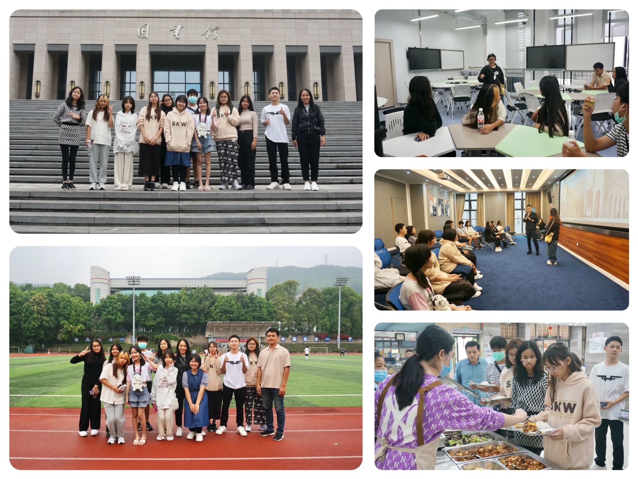留学生院为此次校园开放日准备了丰富的体验活动。通过校园游览、食堂美食体验、参观教学楼及留学生公寓、观看校园足球比赛、与教师和在校留学生面对面交流等多种方式,来访师生亲身体验校园学习生活氛围,充分感受我校留学生真实和精彩的校园生活。优美的校园环境和留学生学习生活状态给来访师生留下了深刻的印象,让泰国同学对未来留学万搏网页版_万搏(中国)官方在线登录充满了美好的期待。